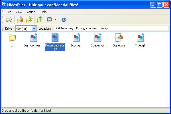 Программа HidesFiles позволяет спрятать файлы и папки от просмотра, доступа и поиска, так, что только Вы будете знать, что эти файлы или папки существуют.