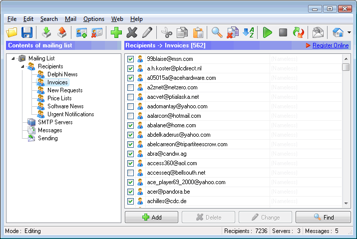 Посмотреть скриншот Mail BomberMail Bomber - утилита для массовой рассылки писем. Позволяет создавать и управлять списками рассылки, генерировать индивидуальные сообщения. Возможность создания раздельных списков с различными настройками, различными SMTP серверами, полный контроль за списком рассылки с возможностю пользователям как подписаться так и при первом запросе отписаться от ваших рассылок. Очень полезная вещь для владельцев сайтов рассылающих свои новости.