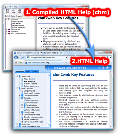 Посмотреть скриншот chm2webchm2web позволяет в считаные секунды преобразовать компилированный HTML help (chm) в полноценную справочную систему, пригодную для публикации в интернет.