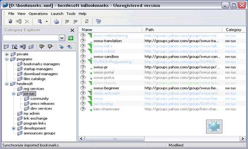 Посмотреть скриншот inBookmarksinBookmarks - это мощный менеджер закладок. Он позволяет Вам сохранять, организовывать, комментировать и проверять Ваши ссылки. inBookmarks имеет полную поддержку drag-drop. inBookmarks поддерживает экспорт и импорт во множество форматов. Поддерживаются большинство браузеров для Microsoft Windows.