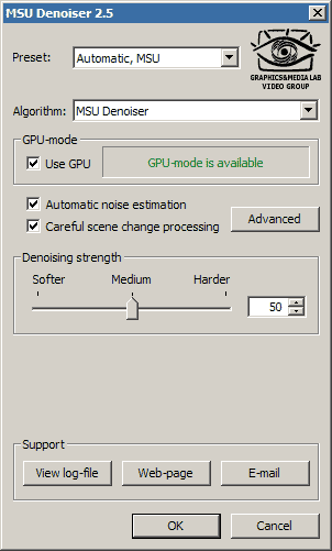 Посмотреть скриншот MSU Denoiser VirtualDub pluginВысококачественный бесплатный фильтр шумоподавления для VirtualDub. Использует GPU для высочайшей производительности при обработке видео. Прост в использовании: есть автоматический режим и несколько пресетов для различных уровней шума. Фильтр применяется для обработки зашумлённого видеопотока, для повышения качества видео, либо для улучшения и облегчения последующей обработки (например, перед сжатием или выполнением деинтерлейсинга).