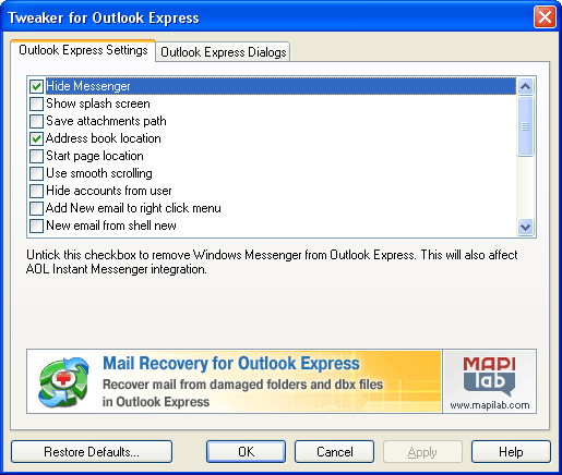 Tweaker for Outlook Express Tweaker for Outlook Express 1.0 Добавить файл в избранное