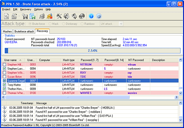 Proactive Password Auditor производит атаку на сеть, пытаясь взломать пароли пользователей. Если хотя бы один пароль взломан за короткое время, то это является показателем безопасности всей сети. Если все пароли выдержали атаки в период между плановыми сменами паролей, то считается, что корпоративная сеть достаточно защищена.