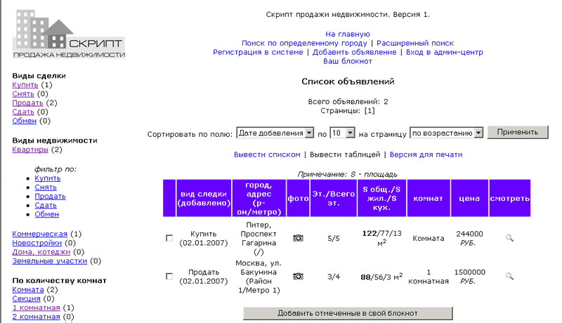 Готовый скрипт для создания доски объявлений по недвижимости, а при желании - и сайта агентства недвижимости. Основные возможности: - Размещение объявлений о продажи недвижимости (с фото). - Любой географический охват базы - города, районы, станции метро. - Регистрация пользователя как частного лица, либо как агентства. Для агентства - дополнительная информация в данных объявления. - Большое количество дополнительных параметров. - Расширенный и удобный поиск. - Работа с группами пользователей - свои настройки для каждого пользователя (количество объявлений, фото, возможность персональной карты). - Минимальная нагрузка на сервер размещения скрипта - за счет оптимизированного алгоритма кэширования. (100 000 объявлений - без проблем*) - Удобный процесс инсталляции - никакой ручной правки файлов. - Легкость подключения дизайна - за счет использования шаблонизатора Smarty - Продвинутая система администрирования и уведомления - вся система под Вашим контролем. - Удобство для посетителей - возможность добавления и просмотрат объявлений из блокнота. - Возможность преобразования в скрипт "Агентство недвижимости" - через создание специального пользователя и запрет регистрации. Полное описание »