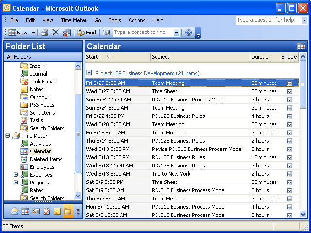 Time Meter предназначен для учета времени и затрат в среде Microsoft Outlook 2000/XP. Time Meter полностью интегрирован в Microsoft Outlook и имеет общее с ним пользовательское меню. Программа идеально подходит для компаний и индивидуальных пользователей, занимающихся проектной деятельностью, которым нужен полный учет затрат времени, денежных средств, транспортных расходов и т.п.. Учет затрат можно детализировать по проектам, видам деятельности, сотрудникам. Мощный генератор отчетов позволяет создавать разнообразные простые и перекрестные отчеты. В качестве шаблонов отчетов используются шаблоны Microsoft Excel, что позволяет использовать разнообразное оформление и собственные логотипы. Полное описание »