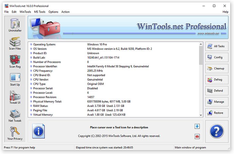 WinTools.net Professional - набор инструментов, предназначенный для повышения производительности операционной системы MS Windows и поддержания производительности на высоком уровне на протяжении всего эксплуатационного периода. В состав программы входят следующие инструменты: