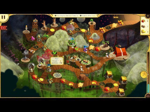 Так как путь лежит по морю, то вам понадобится надежный корабль, сделанный из священного дуба. Выбирайте комфортный режим: "Легкий" — для простой игры, "Нормальный" — для обычной игры, "Сложный" — для тех, кто не боится испытаний, — и займитесь строительством корабля! Прежде всего нужно расчистить от завалов и зарослей дороги, ведущие к дубу, открыть мастерскую, поставить указатели для работников, чтобы те не упали с обрыва, и сделать хорошие запасы дерева для строительства. Следите, чтобы всех необходимых ресурсов было достаточно, кликом мышки раздавайте работникам задания, и скоро дела пойдут в гору!