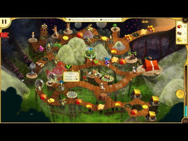Так как путь лежит по морю, то вам понадобится надежный корабль, сделанный из священного дуба. Выбирайте комфортный режим: "Легкий" — для простой игры, "Нормальный" — для обычной игры, "Сложный" — для тех, кто не боится испытаний, — и займитесь строительством корабля! Прежде всего нужно расчистить от завалов и зарослей дороги, ведущие к дубу, открыть мастерскую, поставить указатели для работников, чтобы те не упали с обрыва, и сделать хорошие запасы дерева для строительства. Следите, чтобы всех необходимых ресурсов было достаточно, кликом мышки раздавайте работникам задания, и скоро дела пойдут в гору!
