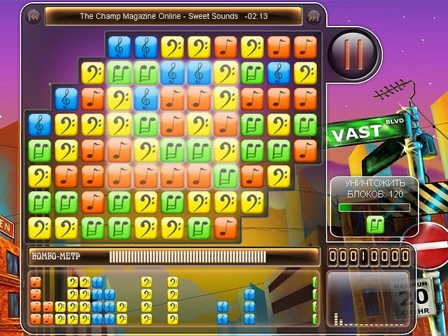 Занимаясь строительством своей музыкальной карьеры, вы будете получать почетные трофеи, а при особом старании сможете увидеть свое имя в списке чемпионов. Добейтесь высоких результатов, используя специальные бонусы — усилители. Некоторые необходимо включать в комбинации блоков, другие — достаточно активировать, кликнув по нужной клетке. Такие улучшения помогут отсортировать блоки по цвету, заморозить игровое поле и остановить время. Нескольких секунд передышки будет вполне достаточно, чтобы сориентироваться в сложной ситуации.