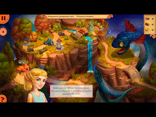 Сестрица же ее Мегара вместе со своими друзьями — Персефоной и котенком — будет устранять беспорядок, учиненный Антигоной. Им предстоит освободить дороги от преград — веток, камней, пудингов и поломанных игрушек; починить мосты и отремонтировать фермы и заводы. А также выполнить задания на каждой локации: расколдовать оловянного воина, усыпить Пифона, разобрать ладью. А на десерт их ждет полет на махолете и визит в город детства.