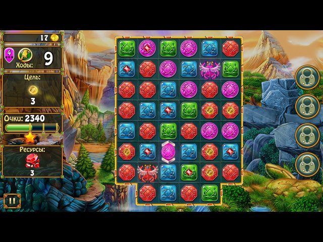 У вас будет масса возможностей показаться свою внимательность, сообразительность и скорость. Благодаря правильно выбранной тактике вы сможете поставить рекорд по добыванию кристаллов, золотых монет и не только. Безусловно, ваш наставник в трудной ситуации обязательно даст вам ценный совет, но справиться с поставленной задачей вам предстоит самостоятельно. Итак, отправляйтесь на игровое поле с разноцветными фишками. Ваша главная задача — составить комбинации из одинаковых плиток, которые находятся рядом. Сначала попрактикуйтесь на поле, где достаточно будет комбинации из четырех фишек, а затем можно будет и усложнить задачу и взять комбинацию из шести. В каждой мини-игре есть задание. Только выполнив его, вы сможете пройти на другой уровень.