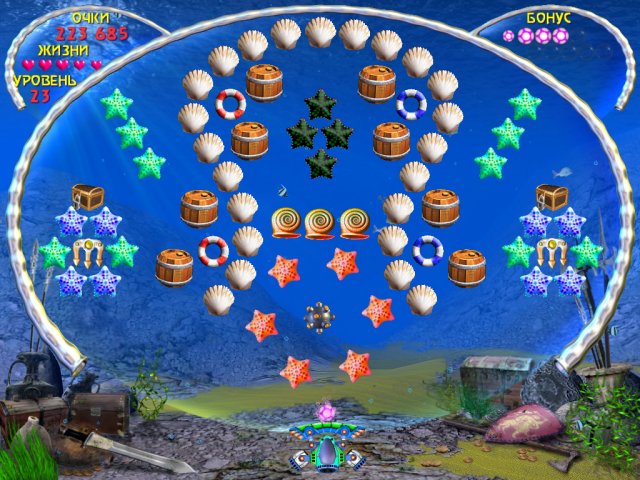 В этой игре вам предстоит помочь повелителю водной стихии Нептуну очистить дно морей и океанов от старых ракушек, бесхозных сокровищ и другого мусора, который мешает подводным жителям. Повелитель глубин предоставит в ваше распоряжение глубоководный батискаф, который будет служить ракеткой, и специальный мячик, которые помогут очистить самые отдаленные закоулки морей и океанов.