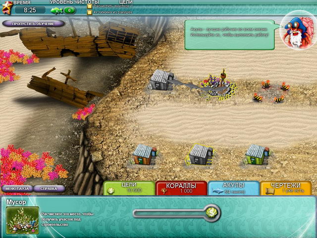 Прежде чем приступать к строительству, необходимо сделать зонирование территории, распределить участки по их назначению, и только потом вызывать бригаду строителей — их роль в подводном царстве выполняют не люди, а акулы. В этом мире все устроено иначе. Вместо привычного кирпича и бетона вы будете использовать цветные кораллы, купить которые можно на морскую валюту — ракушки.