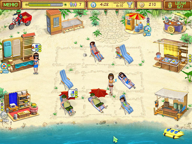 В игре "Пляжный переполох" вам предстоит не только быстро освоить азы пляжного бизнеса, но изрядно попотеть в попытке набрать рейтинг выше, чем у главного соперника. А уж он-то, поверьте, знает, что делает: и охмурить попытается, и пакость устроит, и к боссу подлижется. Но не отчаивайтесь, шаг за шагом вы сможете достичь заветной вершины. Следите за тем, чтобы отдыхающие были довольны, приносите им вовремя прохладительные напитки, бутерброды, сдавайте в прокат надувные матрасы и не забудьте про зонтики, защищающие от солнца. Чем быстрее вы будете действовать, тем больше денег получите, а значит, приблизитесь еще на один шаг к тому, чтобы поставить бывшего приятеля подруги на место.