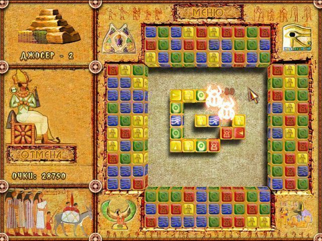В этой игре вам предстоит уничтожить могущественное проклятие, но прежде нужно восстановить пирамиды великих фараонов, чтобы они помогли в непростой схватке с силами тьмы. Разрушить злые чары вам помогут древние магические знаки — глифы. Чтобы добыть их — сыграйте в увлекательную логическую игру, которую, если верить легендам, придумали могущественные боги Земли и Неба.