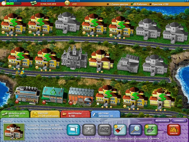 Вы можете совершать любые коммерческие сделки со своей собственностью, но теперь этот процесс стал куда интереснее — в игре появилась возможность торговаться при покупке. Особое внимание уделяйте уровню престижа жилого фонда. Если строить рядом с домами вспомогательные технические здания, вроде Завода или Нефтяной вышки, то они понизят престиж домов. Чтобы нейтрализовать негативный эффект — красьте свои особняки и коттеджи во все цвета радуги, украшайте их зеленью или возводите поблизости парки.