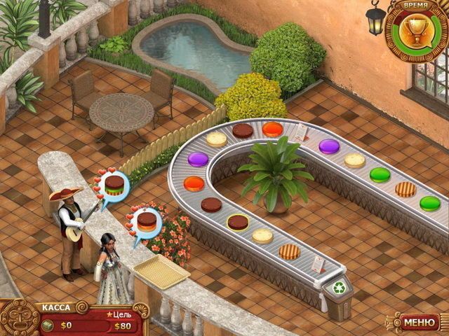 За старания вы будете получать бонусы, которые позволят вам быстро выполнить заказ, а возможно, вам даже повезет с терпеливыми посетителями. Но некоторые из гостей кафе уже стали вашими постоянными клиентами, поэтому постарайтесь запомнить их вкусы. В любом случае будьте внимательны, не заставляйте покупателей ждать — иначе можете остаться без чаевых. Вырученные деньги стоит потратить на обустройство своих владений. Реконструируйте здание — ведь престижный вид повысит и рейтинг заведения.