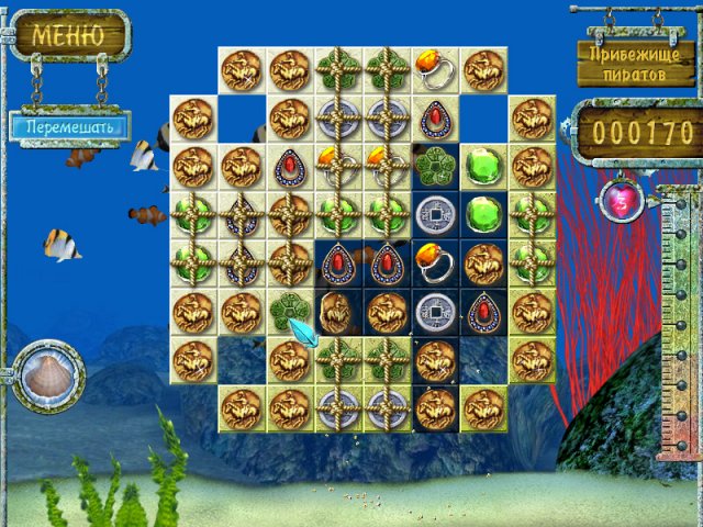 Теперь вам необходимо добыть эти сокровища, а это задача под силу лишь отважным: пираты как следует позаботились о том, чтобы защитить свои клады. Заполучить их можно лишь по частям, меняя местами фишки на соседних клетках. Цель каждого уровня — очистить игровое поле от закрывающих его плиток.