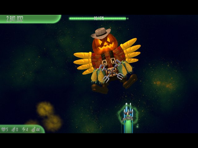 Встаньте на защиту Земли и отражайте налеты пернатых агрессоров! Будьте готовы к тому, что каждая новая атака противника будет все более изощренной. Так, очень скоро куриные командиры начнут выставлять камикадзе в жилетах со взрывчаткой, слать военные шаттлы, использовать в бою черные дыры... Но у вас есть что им противопоставить: вулканические пулеметы, плазменные винтовки, бомбометы и, конечно, секретное вилочное оружие. Если в вашу сторону летят ключи, подарочные коробки, окорочка — ловите, это бонусы, а вот с яйцами будьте осторожны — это мины. Несколько подрывов, и куры будут праздновать свою победу, а вам придется проходить этот уровень снова.