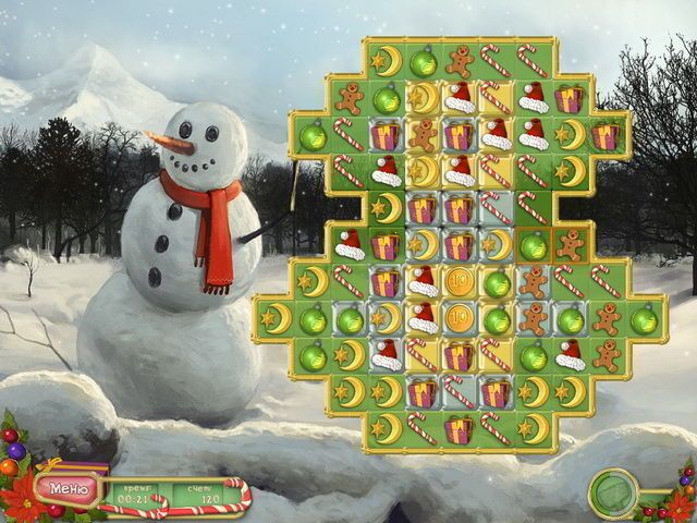 На заработанные монетки вы сможете обновить обстановку вашего новогоднего домика: сделать освещенными пушистые кустики или ледяную тропинку, нарядить снеговика в праздничный шарф и элегантную черную шляпу или приобрести ослепительные гирлянды для хозяйки новогоднего вечера — зеленой красавицы елки. Фон игры с плавно падающим снегом непременно подарит вам соответствующее настроение и ощущение приближающегося чуда.