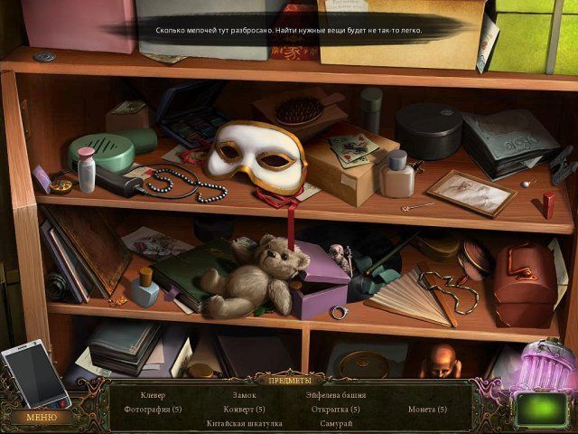 Для этого отправляйтесь в грандиозное путешествие, выберите подходящий уровень сложности и ловко соберите все предметы по списку, обращая внимание на те, которые пригодятся вам в самый ответственный момент. А после, проявите смекалку и разгадайте все каверзные головоломки разных эпох. Вновь разыщите бесценный дядюшкин архив и потайной ход в лабораторию, правильно расставьте чипы с индикаторами и подумайте, как помочь храброму мушкетеру и где может находиться его именная шпага. Мигом осушите водоем и верните на место сокровенные "Слезы Раджи".