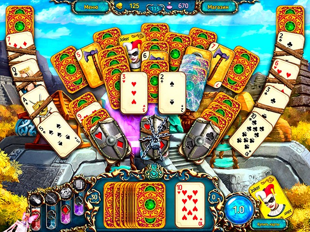 «Страна фей» – это улучшенная версия пасьянса «Солитер». Вам нужно будет освободить игровое поле на более чем ста уровнях игры, как и в обычном пасьянсе. На поле уровня выложены карты, некоторые из них закрыты. Чтобы открыть карту, нужно убрать с нее верхнюю. Карты убираются на колоду из оставшихся карт, но не просто так, а по порядку: например, десятку можно положить на валета или девятку.