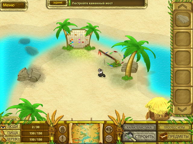Прислушайтесь к словам прекрасной туземки, она плохого не посоветует. Вам нужно показать, что вы достойны жить в этом райском уголке. Для этого необходимо внести заметный вклад в развитие цивилизации Тики. Начнем с малого: сделаем счастливым небольшое поселение туземцев. Возводите крепкие хижины из дерева, запасайтесь продовольствием и привлекайте в новое место как можно больше людей. Следите за тем, чтобы ваш герой достаточно ел и спал, тогда он всегда будет бодр и полон сил.