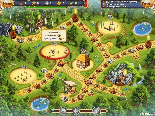 Составьте храброму юноше компанию! Вместе вам предстоит не только найти волшебные доспехи, но и сделать массу полезных дел во благо государства. Например, расчистить дороги от завалов, построить фермы, каменоломни и лесопилки, починить мосты. Умело управляйте расторопными работниками, и они быстро со всем справятся. Постепенно помощников будет все больше, и они смогут заниматься несколькими делами одновременно. Не забывайте вовремя пополнять ресурсы: дерево, еду, золото — и работа закипит!