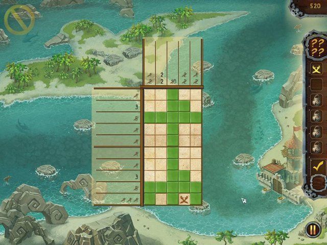 Вот только острова в намеченном маршруте закрытые. Вход строго по результатам пройденных испытаний. Для каждого уровня своя игровая площадка и свой набор клеток и цифр. Вам предстоит просчитать свой ход и угадать заполненную или пустую клетку. Для этого обращайте внимание на числа, расположенные по периметру игрового поля. Каждое число указывает на количество заполненных клеток в выбранном ряду. Минимальный разрыв между двумя числами в одном ряду – одна пустая ячейка. Отмечайте занятые ячейки галочками, пустые – пиратскими скрещенными кинжалами. Что ни шаг, то испытание, а каждый промах оборачивается новым сражением. Но даже не думайте выбрасывать белый флаг!
