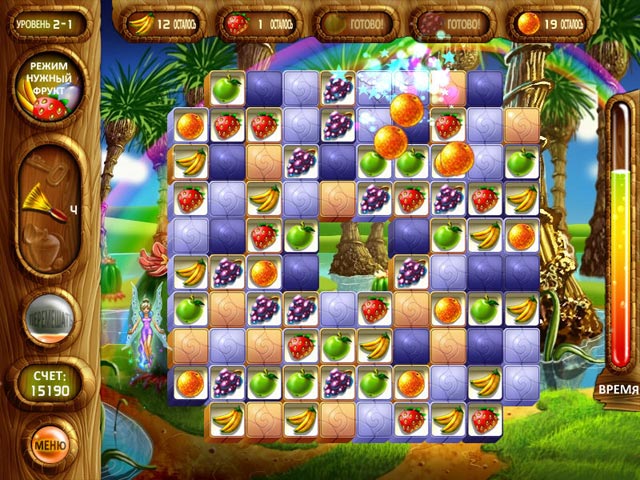 Злая колдунья поместила фрукты в прочные каменные шкатулки. Чтобы разрушить их, собирайте комбинации из трех и более рядом стоящих шкатулок. И вот, каменные оковы пали! Теперь точно так же собирайте одинаковые фрукты, тогда они окончательно обретут свободу. Сначала задача может показаться сложной, но со временем вам откроются дополнительные возможности, которые упростят прохождение.
