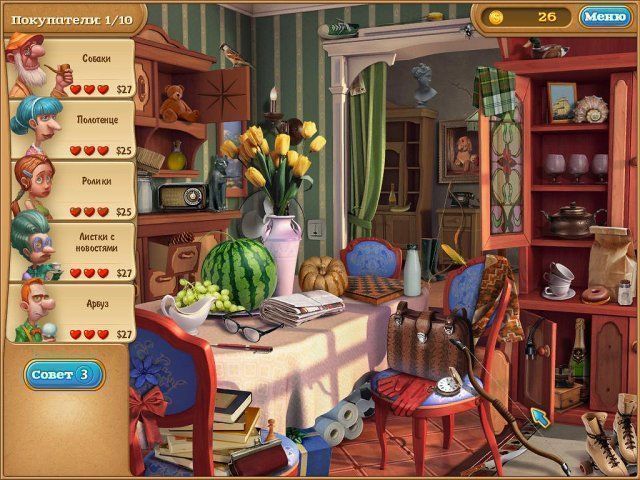 Для воплощения всевозможных дизайнерских идей нужны деньги, поэтому для начала нужно придумать способ их заработать. У Остина уже есть остроумная задумка! Организуйте распродажу множества ненужных вещей, накопившихся в поместье. Кому-то они обязательно понадобятся. Прежде чем принимать покупателей, неплохо было бы навести в поместье порядок. Кое-где необходимо пропылесосить ковер, где-то прибить полочку или заправить постель. Когда начнется распродажа, от посетителей не будет отбоя. Расторопно выполняйте пожелания покупателей и разыскивайте нужные им вещи. Вы можете выбрать режим “не спеша”, и тогда количество заработанных денег не будет зависеть от терпения покупателей. Если же вы играете в обычном режиме, нужно будет вовремя выполнять все заказы посетителей, ведь, чем дольше им придется ждать желаемую вещь, тем меньше денег они будут готовы на нее потратить.