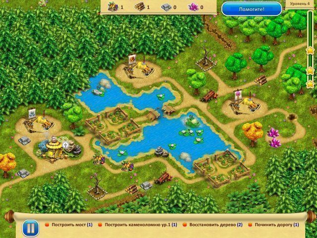 Вскоре вы поймете, что в вашей работе важна последовательность. Только закончив одно дело, вы сможете приступить к следующему. Например, не разобрав завал на дороге, вы не сможете попасть на лесопилку, не собрав достаточное количество ресурсов, не почините постройку. Кстати, что касается ресурсов: они не ограничиваются только продуктами питания, это еще доски, камни и кристаллы. Это те силы и средства, которые необходимы для достижения вашей цели.