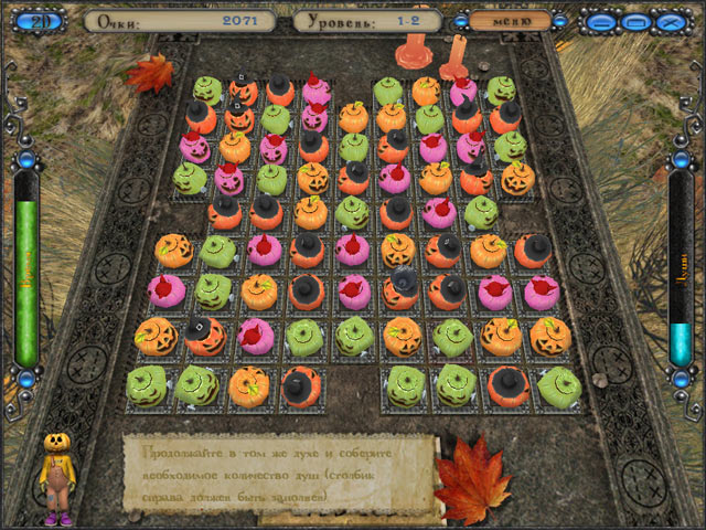 Каждый год Джек украшает свой дом перед торжественной ночью и просит кого-нибудь помочь ему. Сегодня он выбрал вас! Не пугайтесь, хотя Джек и выглядит очень странно, но в душе — он самый настоящий добряк. Так почему бы не помочь ему? Вокруг особняка растут разноцветные тыквы, в которых томятся призраки. Переставляйте тыквы местами, чтобы получались линейки из трех и более одинаковых элементов, и тогда призраки обретут свободу!