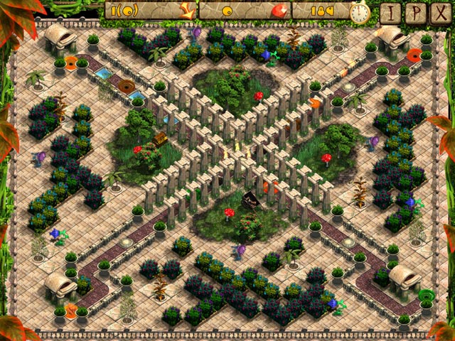 На дорожках разложены разнообразные бонусы, среди которых попадаются драгоценные камни, монетки, звезды, сферы с маной и многое другое. Ваш аймон с удовольствием все это слопает. Он не остановится, даже если ему попадется красная сфера замедления или ядовитый гриб. Поэтому старайтесь вести его безопасными путями: на дорогах хватает ям и открытых люков, в которые можно провалиться. Чтобы иметь возможность перескочить через них, придется потратить время на поиск потайных кнопок.