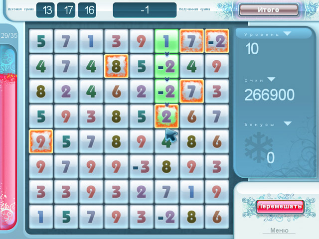 На первых этапах может показаться, что все очень просто, но это только иллюзия. Сначала на игровом поле появятся отрицательные числа, которые будут вычитаться из сумм. Затем возникнут горящие клетки, они будут медленно опускаться вниз. Если хотя бы одна из них достигнет края экрана, игра закончится. К отрицательным числам вскоре прибавится умножение. Если добавить такую фишку в цепочку, то уже имеющаяся сумма возрастет в несколько раз!