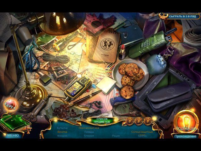 Вас ждут головоломные задачки, поиск предметов по списку и силуэтам и увлекательные мини-игры. Успешно справиться с задачами помогут карта, полезные вещицы из инвентаря, подсказки, дневник и встроенное прохождение. После основной игры станет доступна бонусная глава. Музыка, видео и картинки напомнят о пережитых приключениях. Удачи!