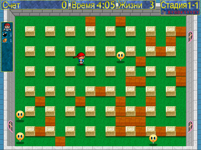 Без бомб им не обойтись: ведь путь к выходу то и дело преграждают стены, да и сам выход тоже замурован стеной. Поэтому стены можно и нужно взрывать. Только осторожно: взрыв легко может зацепить самого бомбера. Установив взрывоопасную игрушку, убегайте подальше или прячьтесь за стенами покрепче: это спасет жизнь отважного бомбера. К счастью, только саперы ошибаются лишь однажды. У бомбера есть несколько жизней, но уровень каждый раз придется проходить заново.
