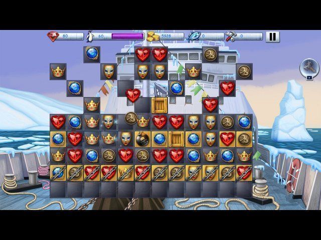 Опустившись на дно, вы обнаружите несметные сокровища, оставшиеся с древних времен, но взять их будет не так-то просто. Чтобы забрать золото, драгоценные камни, загадочные артефакты и другие находки, вам нужно собирать их в группы по три штуки. Такая цепочка уничтожает золотую плитку под собой, и когда на игровом поле не останется плиток, погружение можно считать законченным!