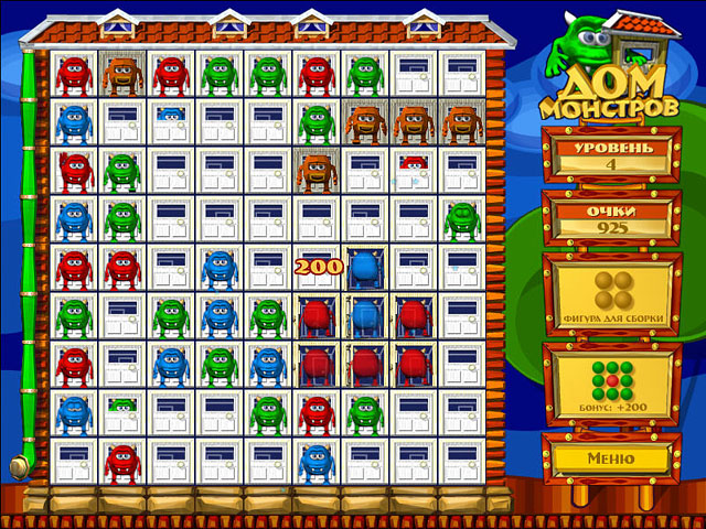 Существуют 2 варианта игры: Классический и Сложный. Для классического варианта — вам просто необходимо собрать в группку 2x2 четырех монстриков одинакового цвета, в усложненном — фигура меняется на каждом 5 уровне.