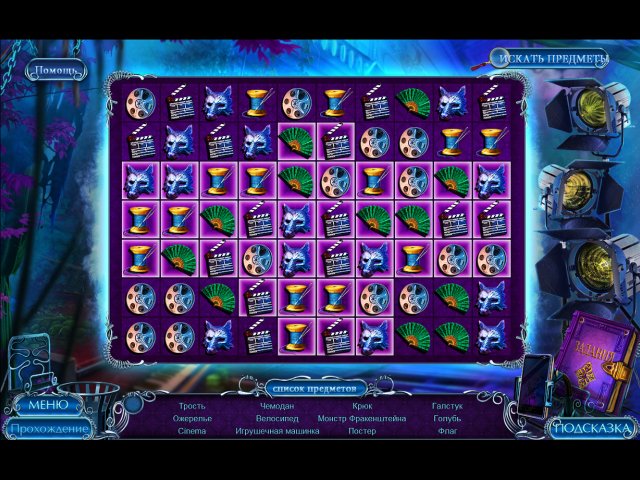 Остановите безумного режиссера, пока Майю и ее коллег не постигла та же участь. На многочисленных локациях — в подвале, зрительном зале, на съемочной площадке — собирайте полезный инвентарь. Выполнить поставленные задачи вам помогут ноты для фортепиано, лак для волос, лазерная указка и другие предметы. Если их поиск наскучит вам, то в любой момент вы можете заменить его игрой "три в ряд". А потребуется помощь — воспользуйтесь подсказкой. Только не забывайте, что награды вы можете получить только в том случае, если пройдете поиск предметов без подсказок, а мини-игры — без пропусков.