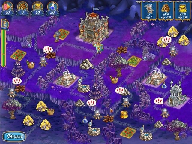 Обратите внимание на основные показатели вашего труда: еда, дерево, золото и мана — волшебная вода, с помощью которой совершаются магические обряды. Они все взаимосвязаны. Например, без отличного завтрака рабочий не сможет срубить ель и пополнить запасы дерева для строительства. Поэтому первое, что нужно сделать, — это раздобыть побольше продовольствия. Соберите с грядок спелые овощи и не зевайте: очень скоро они поспеют снова. Чтобы пополнить свою казну, отправляйте вассалов на поиски золотых самородков — дело это чрезвычайно выгодное! Хоть и говорят, что мана на дороге не валяется, как бы ни так! Будьте внимательны, и вы обязательно найдете сосуды с магической жидкостью. Используйте ее, чтобы удвоить ваши урожаи на огородах и запастись вкусными овощами впрок.