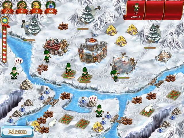 Но это еще не все препятствия, с которыми вам предстоит столкнуться. Периодически к вам будут захаживать ледяные ведьмы и белые медведи. Отгоняйте непрошенных гостей от работающих эльфов, иначе поиск оленей может затянуться надолго. А ведь вам нужно поторопиться и спасти праздник, даже если ради этого придется свернуть горы. Не подведите дедушку. Вы его единственная надежда!