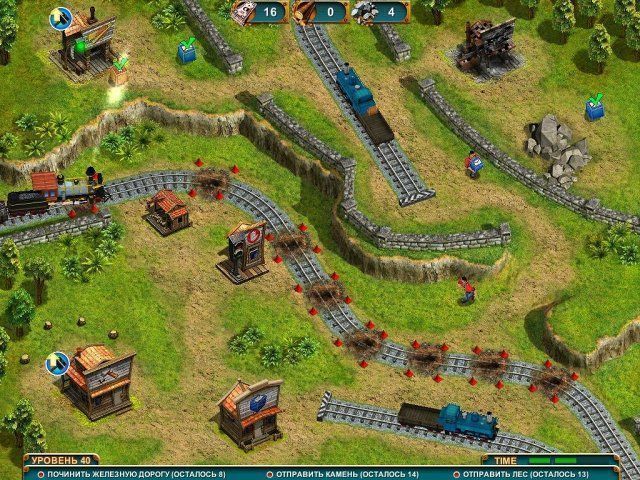Железная дорога проходит через лесные массивы. Чтобы восстановить разрушенные мосты и улучшить производственные здания, вам понадобится древесина. Однако на рубку каждого дерева потребуются деньги. А где их взять? Регулярный доход вам будут приносить — точнее, привозить — поезда. Главное, вовремя расчищайте завалы на участках железной дороги и следите за разрешающим сигналом семафора.