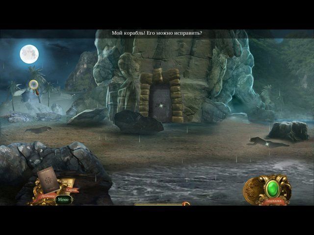 На скале вы заметили фигуру: высокий мужчина в черном плаще смотрел на вас пронзительным взглядом мистически сияющих глаз. Стоит ли ждать от него помощи? Он явно не ищет с вами встречи, а это плохой знак. Найдите способ попасть в пещеру в скале — оттуда вы наверняка сможете подняться наверх, чтобы встретиться с незнакомцем. Задать ему пару вопросов точно не будет лишним. Любая информация о том, как отсюда выбраться, сейчас дороже золота. Хотя и оно не помешает! Собирайте дублоны на локациях и ремонтируйте на эти деньги разбившийся корабль.