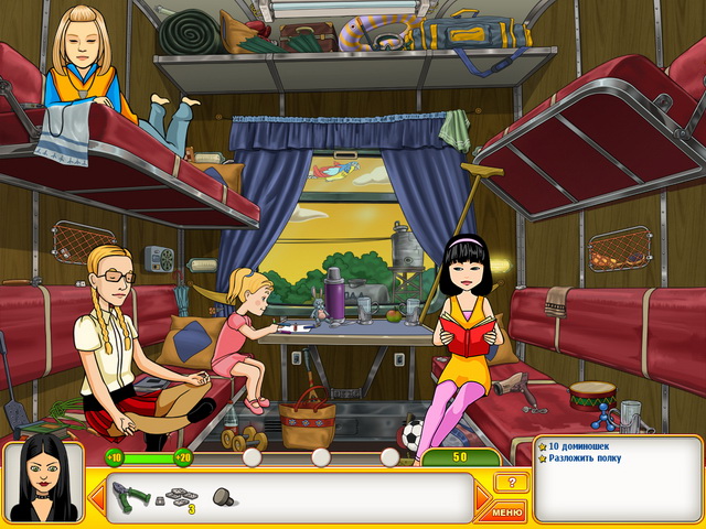 Найдите Машины заколочки, бантики, платья, солнечные очки и постарайтесь запихнуть все эти вещи первой необходимости в чемодан. Вместе с Галиной Сергеевной приведите в порядок кучу книжек по школьной программе и мобилизуете Полежайкина, чтобы отнести их в библиотеку. Отремонтируйте ролики, научитесь правильно надувать футбольный мяч и запросто обходиться с шуруповертом — не хуже, чем Женя Васнецова. Придумайте способ поймать новозеландскую муху и подсмотреть, как расположены корабли неприятеля на поле "морского боя".