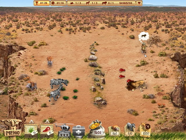 Почувствуйте себя настоящим зебро-, гепардо- и бегемотозаводчиком в одном лице! Откармливайте своих диких питомцев, лечите от разных болезней и спасайте от наглых браконьеров. Эти коварные охотники то и дело нападают на безмятежно щиплющих травку бородавочников и гепардов, аппетитно поедающих свой законный кусок мяса. Как только накопите достаточно денег, которые, кстати, и принесут вам ваши подрастающие воспитанники, сразу же приобретайте дополнительную еду и новых животных, если этого требуют цели уровня.