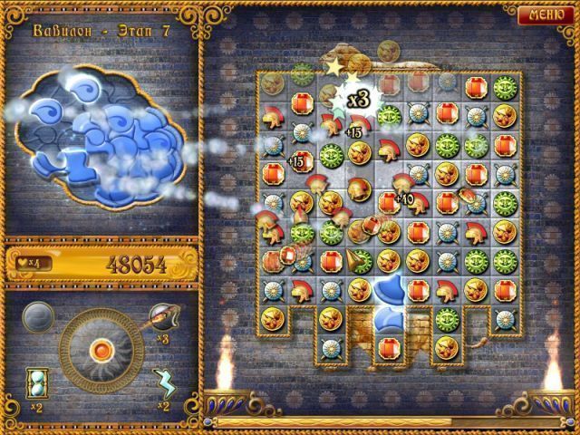 Время не пощадило артефакты, и каждый из них оказался разбит на множество мелких кусочков. Все они находятся на игровом поле в окружении разноцветных фишек. Ваша задача заключается в том, чтобы удалять с уровня группы из 3 (и более) одинаковых фишек с таким расчетом, чтобы провести осколок артефакта к нижней границе игрового поля и освободить его. На каждом уровне находится несколько осколков и бонусов, которые вам нужно освободить за отведенное время.