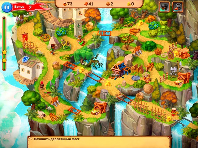 В самой игре 45 уровней основной истории и 9 бонусных, в которых вам будет нужно помочь отцу Туку избавить родной монастырь от сборщика налогов. На всех уровнях вам придется убирать препятствия, ремонтировать здания и мосты и обезвреживать многочисленных врагов. Для этой цели есть несколько ресурсных зданий. Фермы, лавки, лесопилка, прииск, гильдия воров и веревочная мастерская – каждое из зданий поставляет свой ресурс, и их можно улучшать несколько раз. Кроме этого, некоторые местные жители не прочь поторговать с героями, предоставляя различные ресурсы и квестовые предметы за золото.