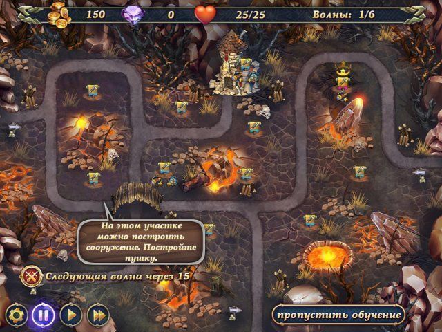 К аванпосту ведут несколько тропинок, по которым перемещаются противники. Вдоль них заранее оборудованы позиции для размещения орудий и вспомогательных зданий. Некоторые места настолько хороши, что их придется выкупать за магические кристаллы, в изобилии вылетающие из поверженных врагов. Каждое орудие обладает уникальными характеристиками и может применяться для определенных типов врагов. Улучшения, зарабатываемые в процессе игры, дадут вам возможность наносить неотразимые удары даже по самым невероятным целям!