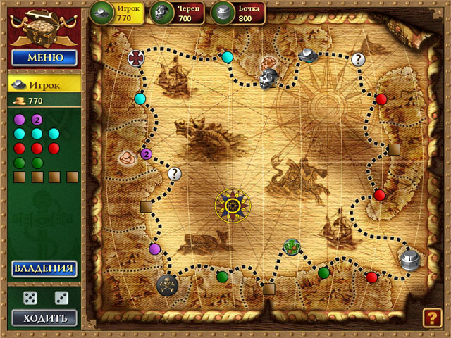 Бросая виртуальные игральные кости, игроки по очереди ходят по игровому полю. Стоя на свободной земле, вы можете купить ее, и тогда остальным придется платить за постой. Скупив все земли одного цвета, вы сможете строить на любой из них корабли. Чем больше кораблей построено на земле — тем больше должны будут платить соперники.
